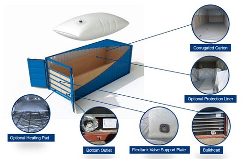 Re-useable steam heating system, high temperature valves, air vents, container liners, insulation are just some of the flexitank options than can be offered to facilitate the handling and transportation of your liquid products.